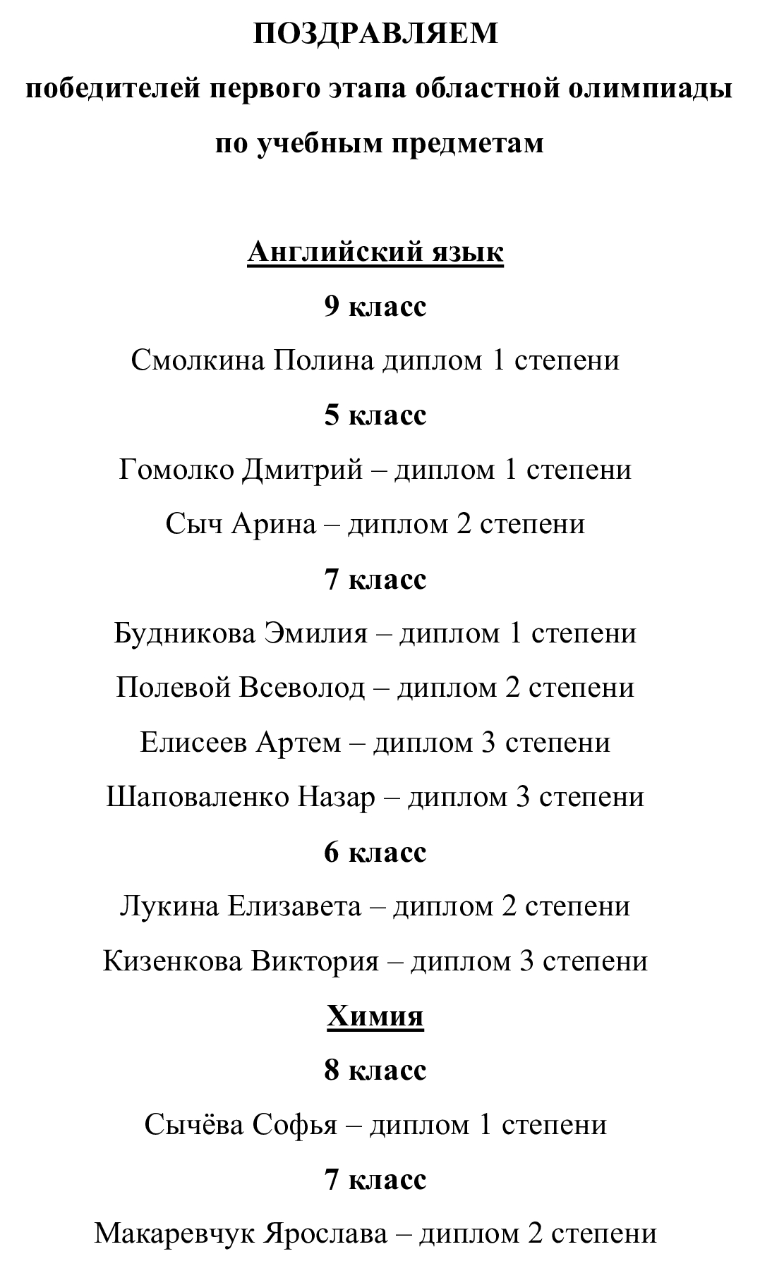 Поздравляем победителя III этапа республиканской олимпиады по учебным предметам и педагогов школы с достойным результатом!Чернова Виктория, 11 класс, диплом 3 степени по трудовому обучению, учитель Павленко Анна Павловна